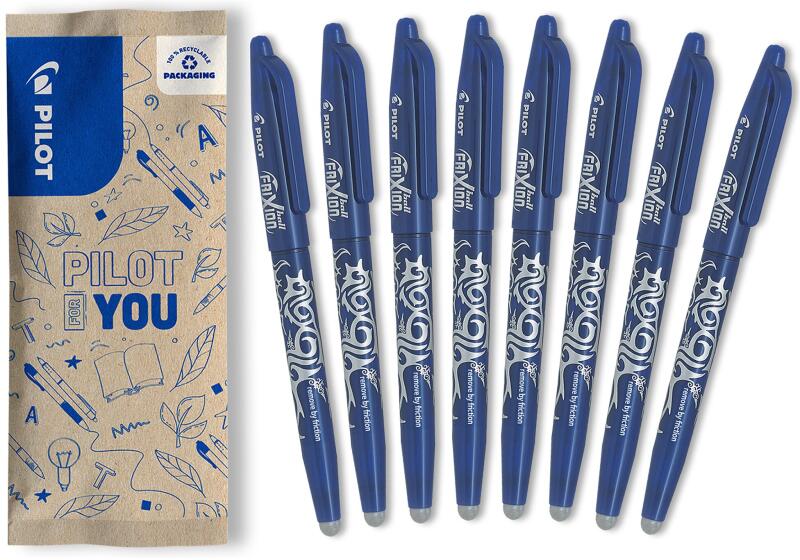 Flow pack szett 8x Frixion golyóstoll 0.7 kék tollbetéttelÍrjon gondtalanul a FriXion golyóval, radírozzon a papír károsítása nélkül a FriXion radírral, és írjon újra azonnal. A hőérzékeny tintát a PILOT fedezte fel és szabadalmaztatta. Ennek az innovációnak köszönhetően a PILOT folytatja az írás forradalmasításának hagyományát a FriXion golyóval. Jogi dokumentumokon nem használható! ElőnyökEgy apró gesztus is jelentős változást hozhat a globális felmelegedés elleni küzdelmünkben!A hőérzékeny tintának köszönhetően azonnal írjon, töröljön, írjon újra!Hatékonnyá és kényelmessé teszi az írást a Pilot tinta folyékonyságának köszönhetően. Ergonómikus íróeszköz gumi markolattal a jó irányíthatóság és az írási kényelem érdekében!Újratölthető termék. Gazdaságos és környezetbarát. Legalább 50%-ban* újrahasznosított műanyagból készült (a terméktartalékok és a csomagolás kivételével), hogy segítsen megmenteni bolygónk erőforrásait. Kupakos íróeszköz. ➤ Hőérzékeny tinta (Metamo)➤ Volfrám-karbid golyó➤ Ergonómikus gumi markolat➤ Elérhető színek: kék. ➤ Hegy vastagsága: 0,7 mm➤ Írásvastagság: 0,35 mm