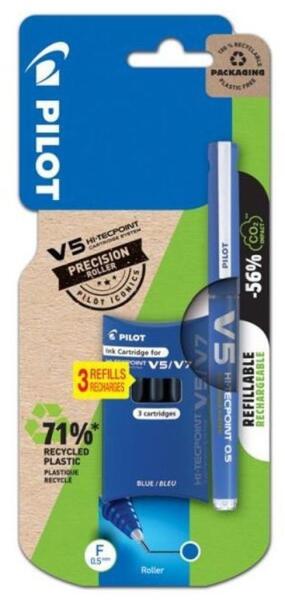 Pilot Rollertoll 0, 5mm, kupakos tűhegyű V5 HI-Tecpoint BT + 3 db betét Pilot, írásszín kék (BXC-V5-L+S3-BT) - web24