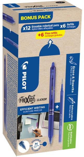 Pilot Frixion Clicker ECOPack kiszerelésben. 12 db toll + 12 db betét.