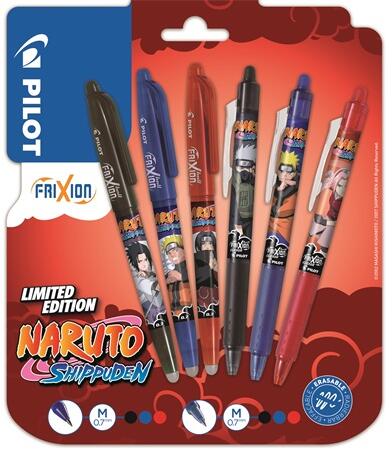 Pilot Rollertoll + golyóstoll készlet PILOT Naruto Frixion Ball 6db/csomag, 0, 7 radírozható, piros, kék, fekete