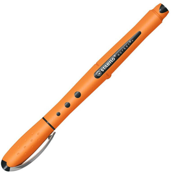 STABILO Bionic worker folyékony tintás rollertoll irodai és otthoni használatra, fekete színben. A strapabíró rollertoll hegye és a puha, csúszásmentes szár kivételesen sima írásélményt biztosít. A robosztus hegy nek köszönhetően a toll karcolás nélkül siklik a papíron. Ahol a kényelem, a tartósság, a megbízhatóság és a hosszú élettartam fontos, ott nélkülözhetetlen a STABILO bionic worker rollertoll. A toll teljes szárát csúszásmentes felület borítja, így a hosszabb ideig tartó munka is kényelmes marad, anélkül hogy fájdalmat vagy görcsöt okozna a kézben. Legyen szó jegyzetelésről, személyes levelek írásáról, mérési eredmények jelöléséről vagy művészeti alkotások készítéséről, ez a népszerű és strapabíró rollertoll minden nehéz feladatot megkönnyít. Kiváló minőségű megoldás a magas elvárásokkal rendelkező szakemberek számára munkahelyen, iskolában vagy stúdióban. Praktikus klipsz segíti a könnyebb hordozhatóságot és a kupak a toll végére rögzíthető írás közben. Tolltest: narancssárga . Színe: fekete . Vonalvastagság: 0,3 mm .