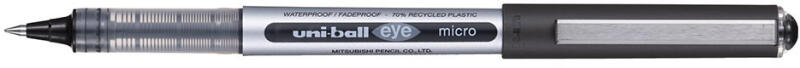 Megbízható és kiváló minőségű, az uni-ball Eye Micro rollerball toll több mint 30 éve világszerte kedvelt. Az Eye Micro íróeszközök uni Super Ink tintát tartalmaznak, amely fakulás-, víz- és hamisításálló, így ideális fontos dokumentumok, iskolai munkák és megőrzésre szánt jegyzetek számára. Az Uni-ball környezetért tett erőfeszítéseinek köszönhetően, már 70%-ban újrahasznosított műanyagból készül. A kiváló minőségű rollerball és az egyedi 'uni-Flow' rendszer biztosítja a folyamatos tintaáramlást, ami sima írási élményt nyújt az utolsó cseppig – így nem kell aggódnia a toll elakadása vagy a tinta hirtelen kifogyása miatt. Jellemzők: Kupakos Hegy rozsdamenes acél Tinta: vízálló és UV álló Tollszár anyaga: 70%-ban újrahasznosított műanyag Golyó: 0,5 mm átmérőjű Irásvastagság: 0,3 mm Iráshossz: 1300 m Írásszín: fekete